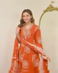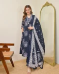 Step into timeless elegance with this exquisite Kurti with Pant and Dupatta Set, designed to make you stand out at any festive or celebratory occasion. Featuring a graceful A-line silhouette, this outfit offers a beautiful flare that enhances your overall look with a regal and sophisticated touch.