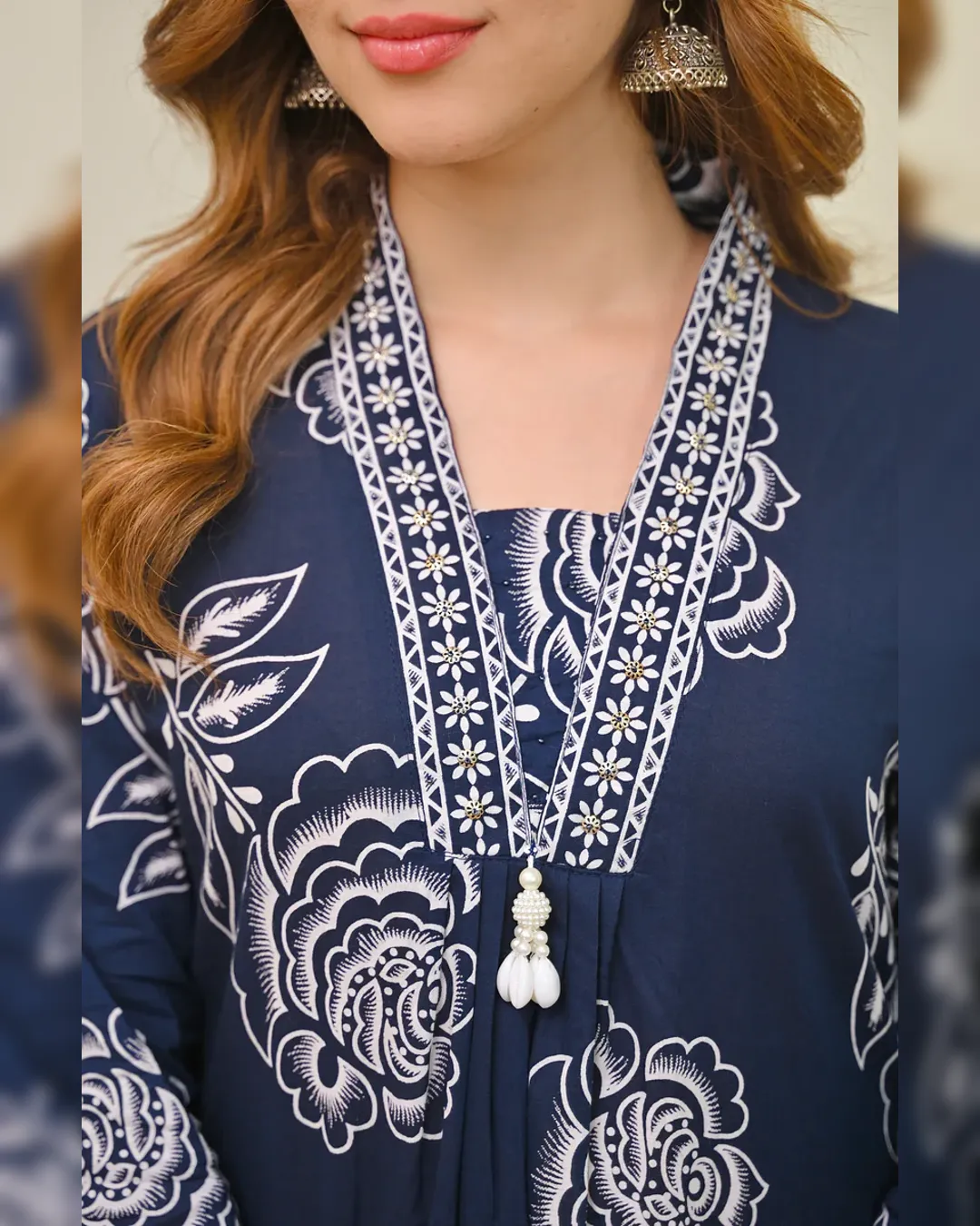 The intricate detailing on the yoke adds traditional charm, while the soft Cotton 60x60 fabric ensures breathable comfort for all-day wear. Perfectly balancing style and ease, this elegant set is ideal for both everyday wear and special occasions.