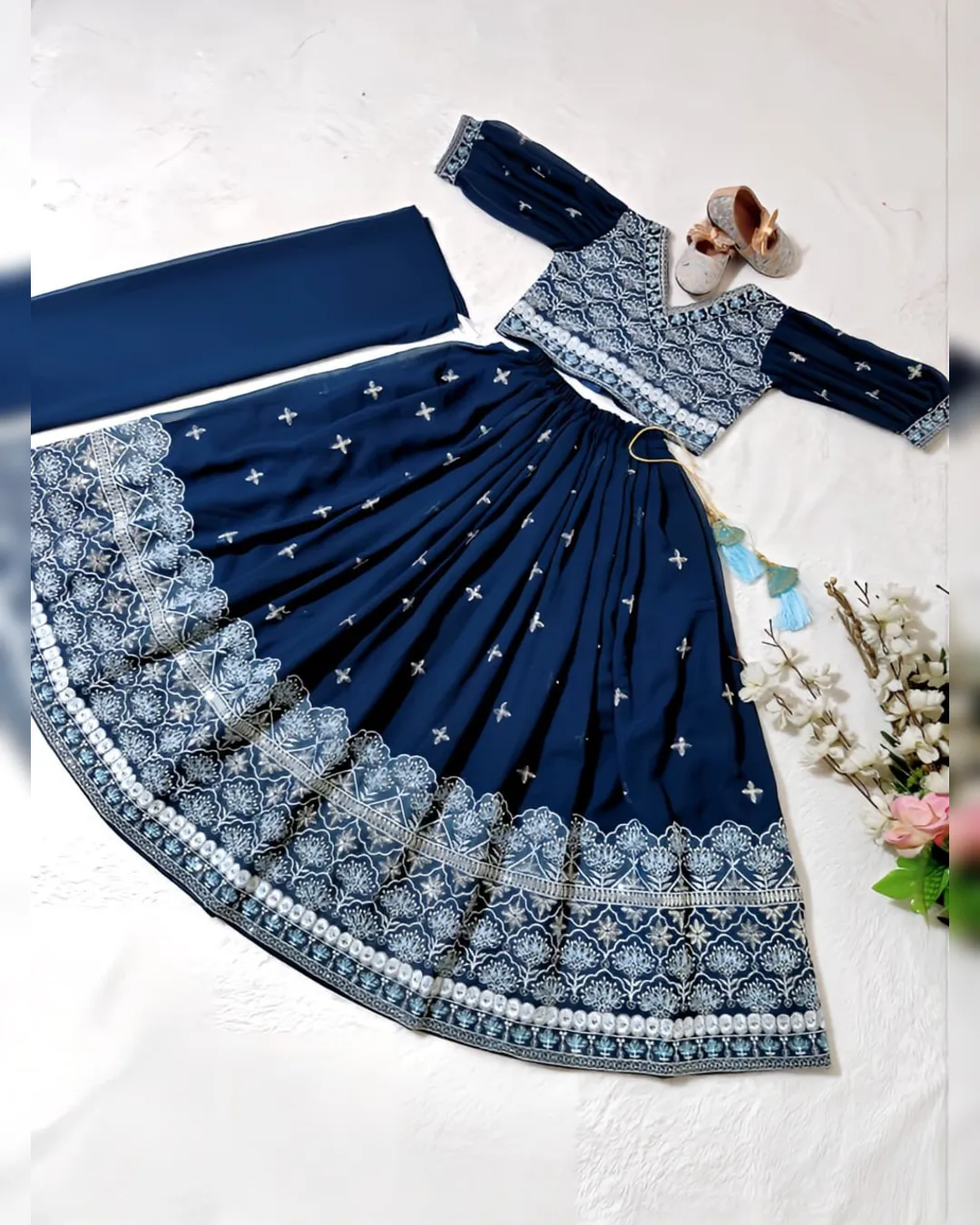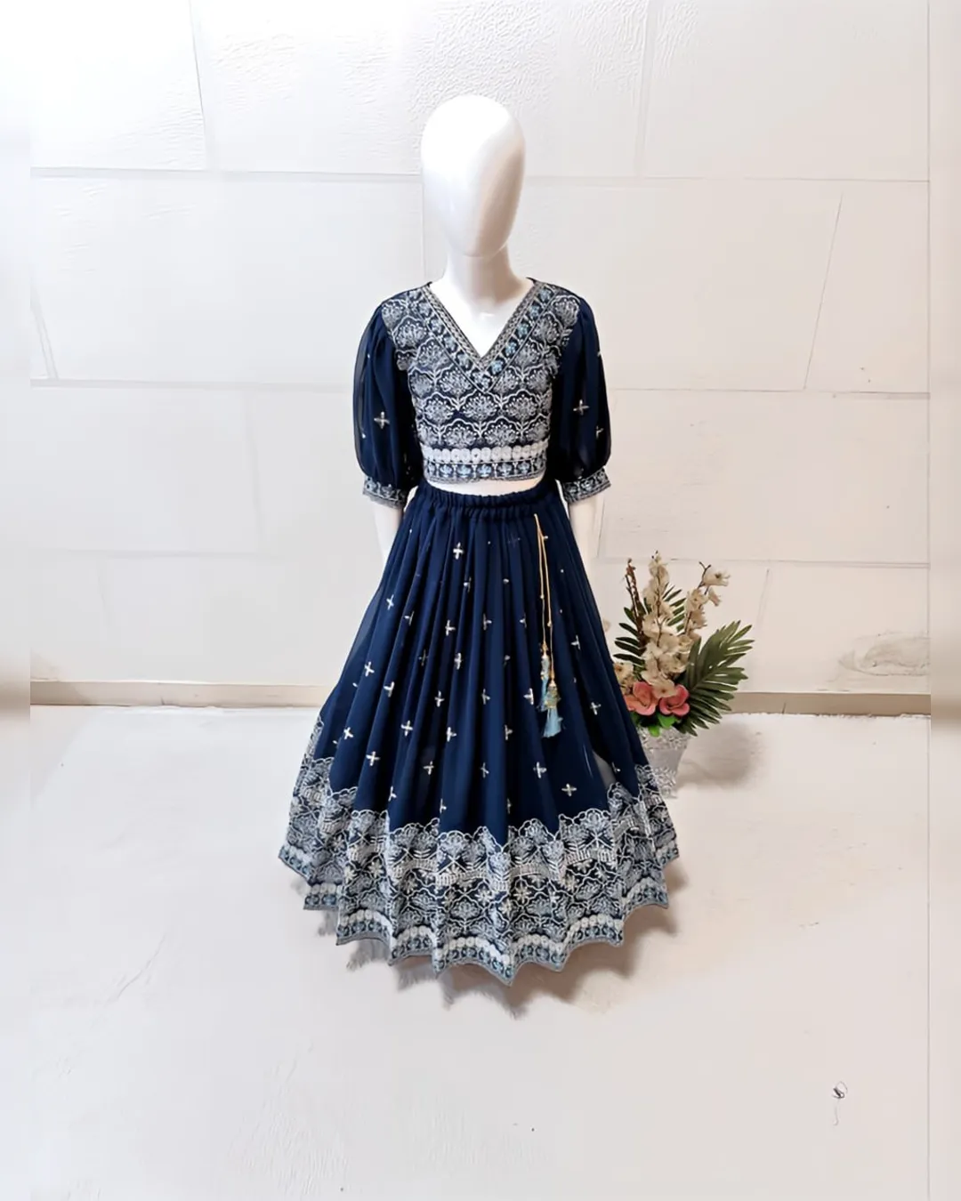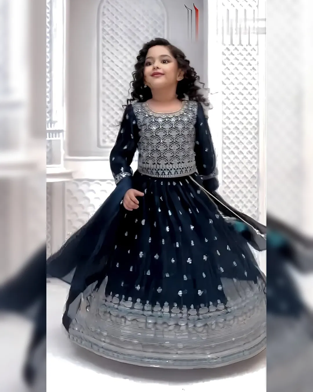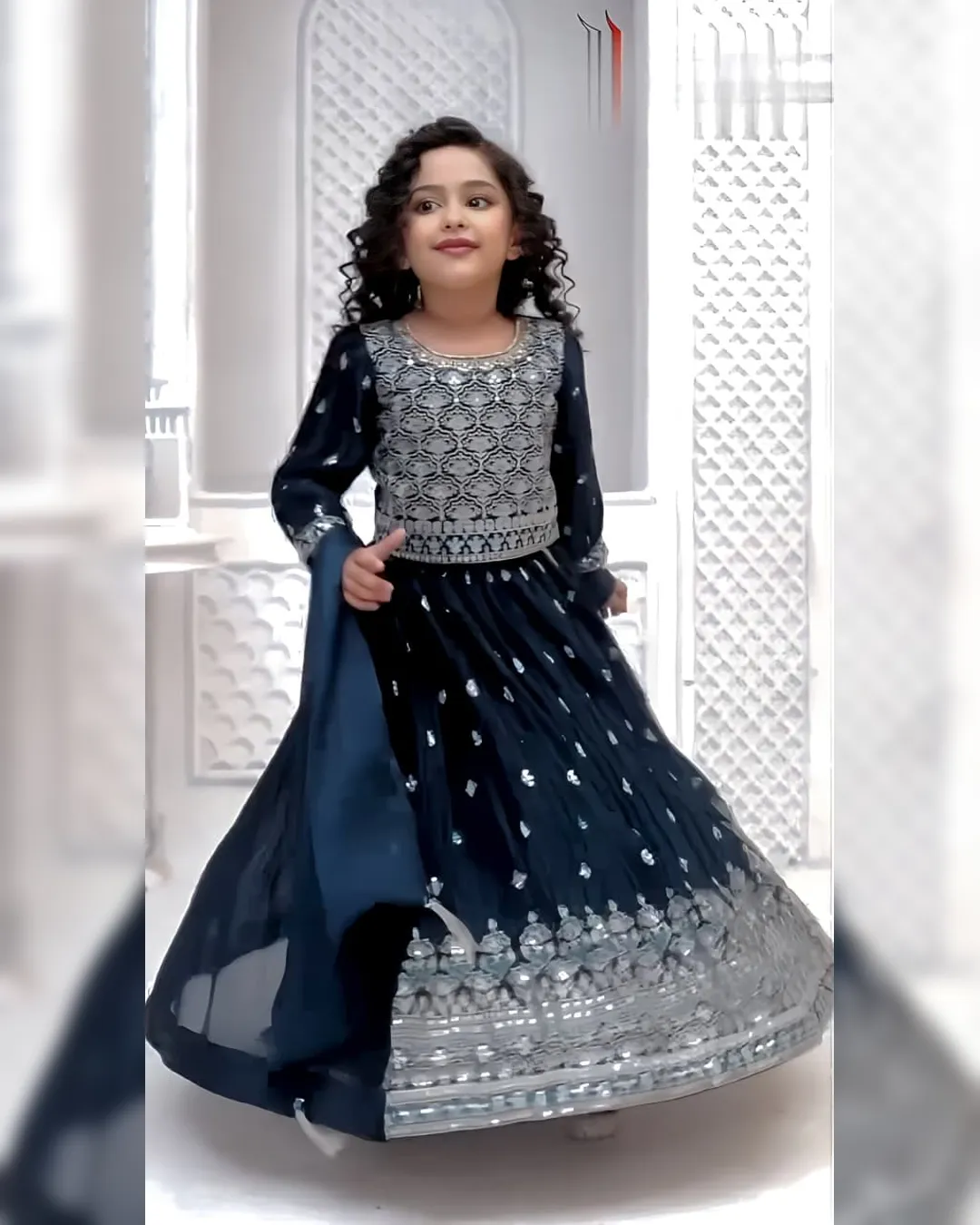 Give your little one a glamorous festive look with this Trending Sequins Embroidery Work Lehenga Choli Set, crafted in elegant Faux Georgette fabric.