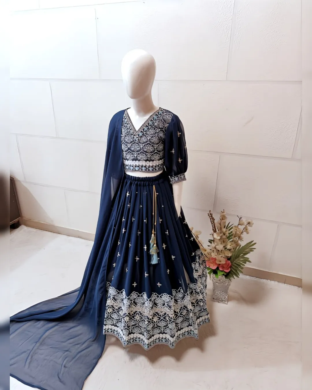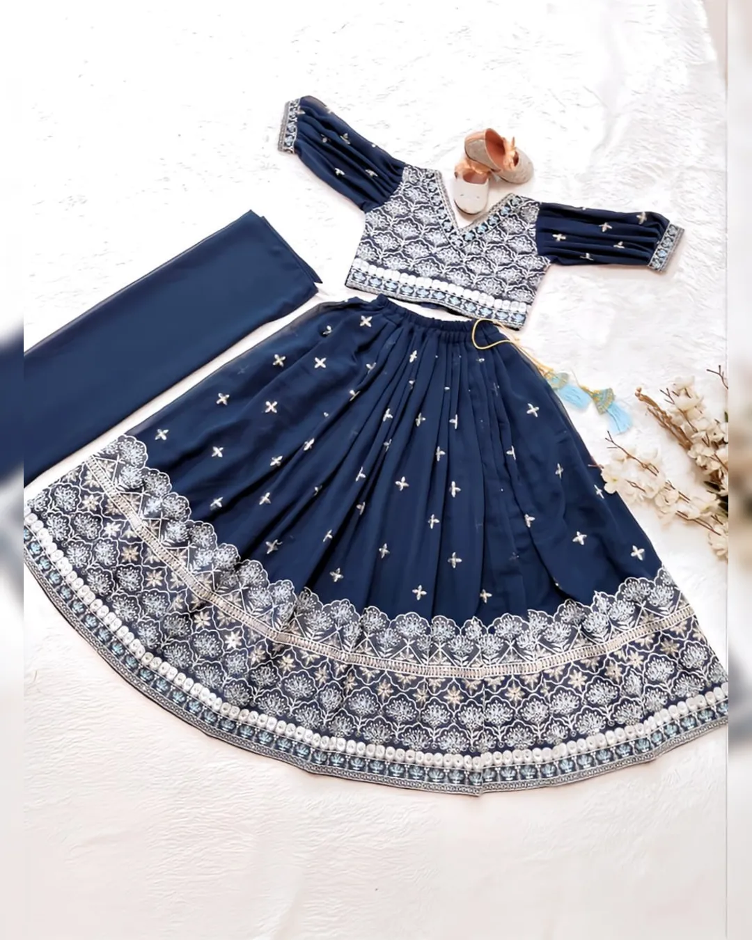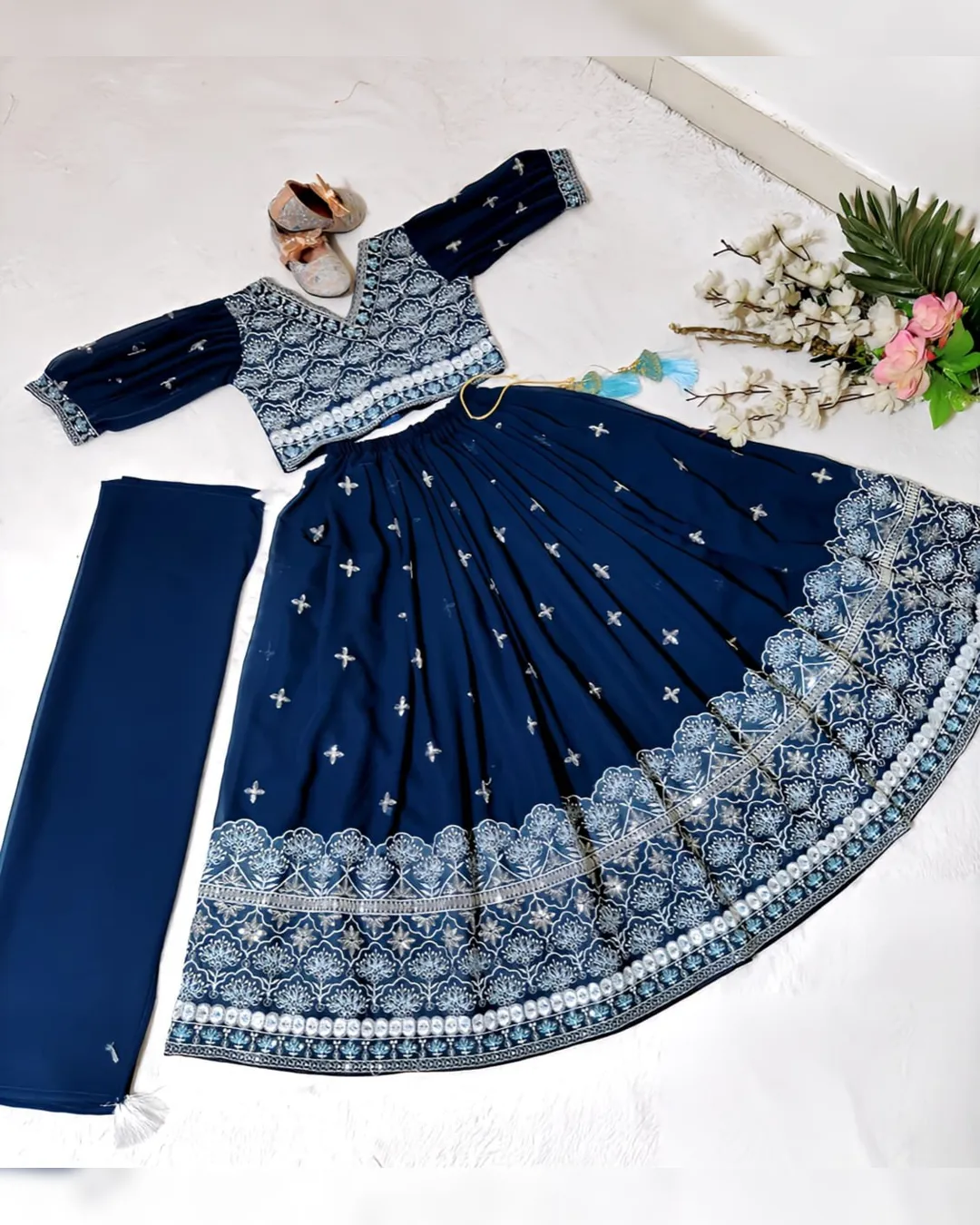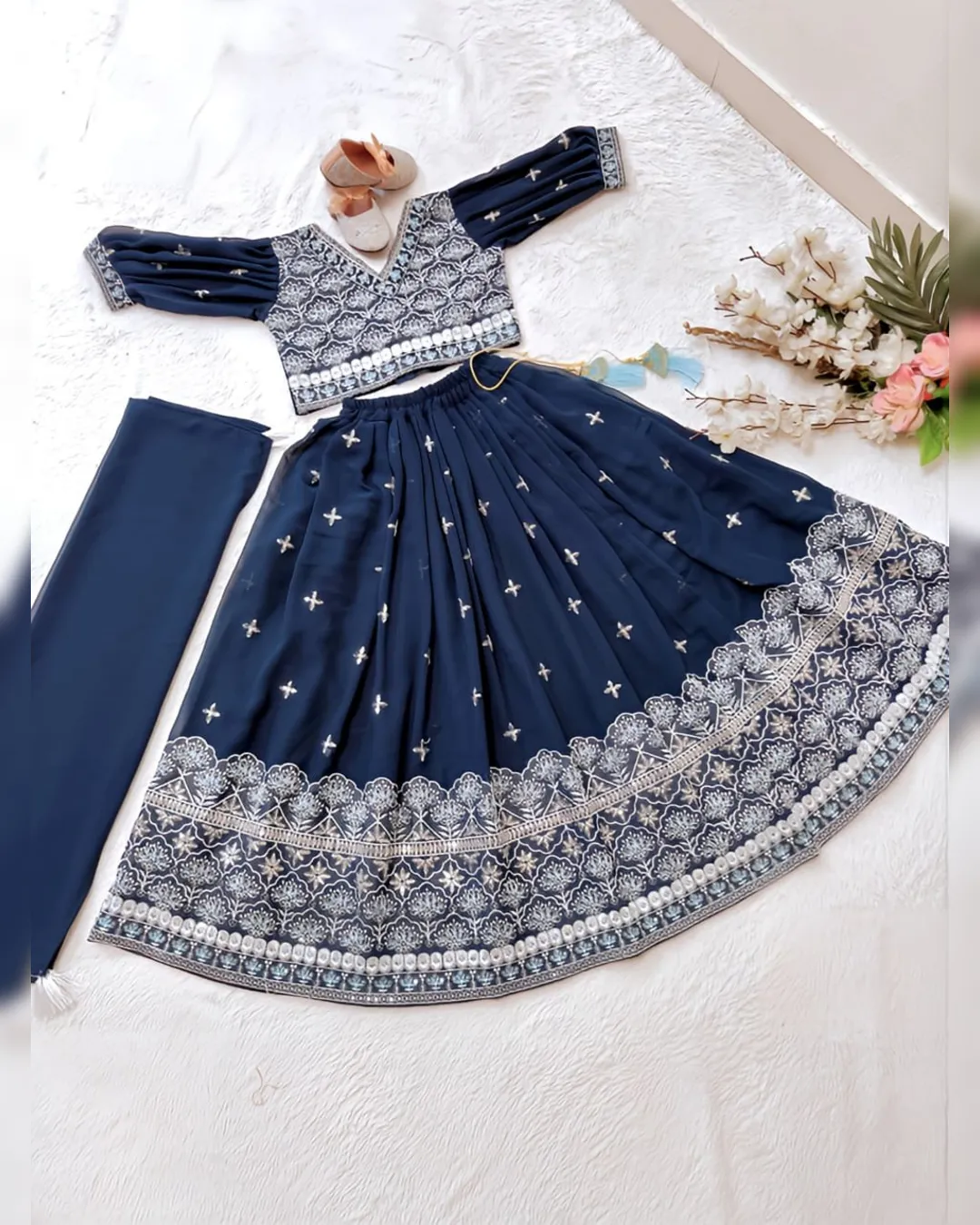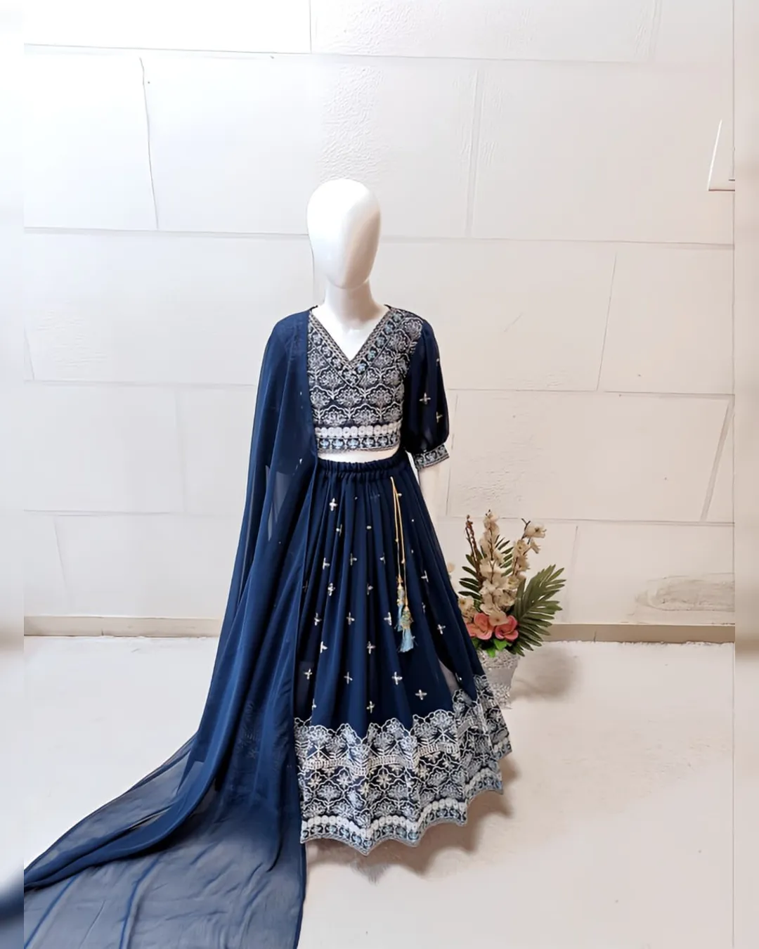 Give your little one a glamorous festive look with this Trending Sequins Embroidery Work Lehenga Choli Set, crafted in elegant Faux Georgette fabric.