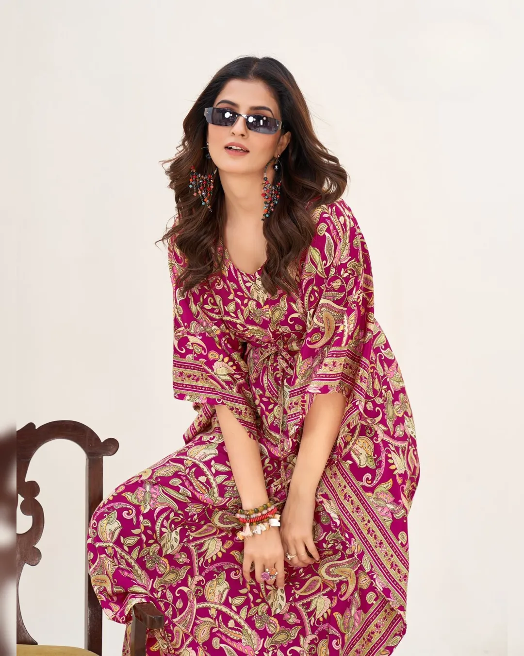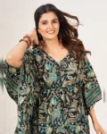 Elevate your wardrobe with this best-selling Long Kaftan, crafted from Heavy French Crape fabric known for its soft feel and elegant fall. Featuring the latest trending prints, this kaftan blends style with comfort, making it ideal for lounge wear, vacations, resort looks, or even casual festive wear.