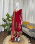 Paired with a fully stitched micro cotton pant for ease of wear and a beautifully embroidered faux georgette dupatta with four-side lace border, this ensemble perfectly blends tradition with modern elegance.
