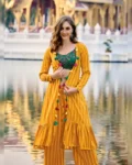Ideal for festivals, Navratri nights, and family functions, this stylish outfit brings a bright and cheerful vibe to your ethnic collection.